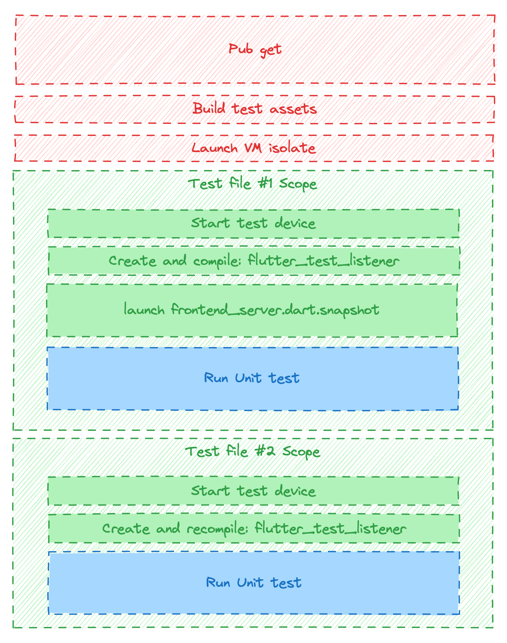 FlutterTesterTestDeviceis created to run one single.dartfile (but it’s compiled as a dill file). It delegates running unit tests into the flutter_test process inside the flutter engine. - Creating and compiling/recompiling