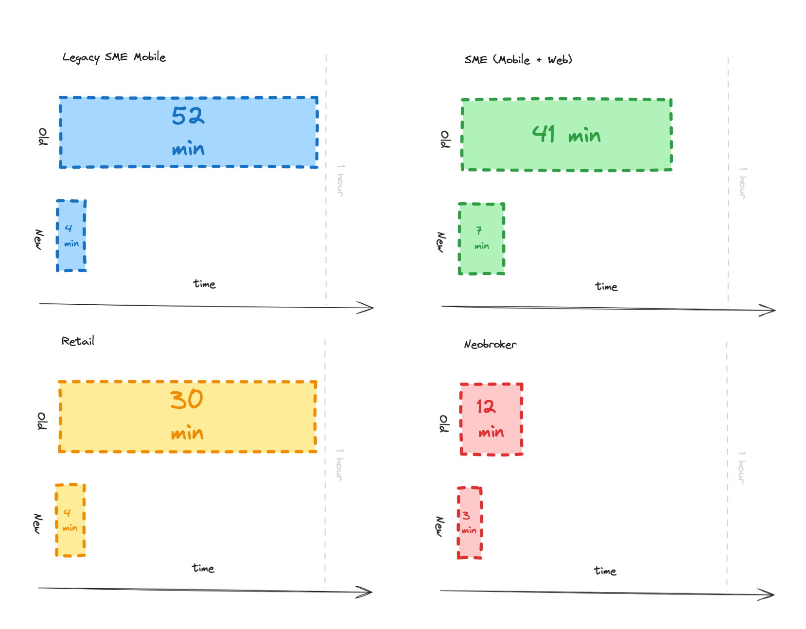 Let’s see the exact numbers and statistics. We have three products: SME, Retail, Broker, and we are going to look into 4 pipelines with tests Retail, Broker, SME (Legacy Mobile only), SME Common (New architecture for Web and Mobile).